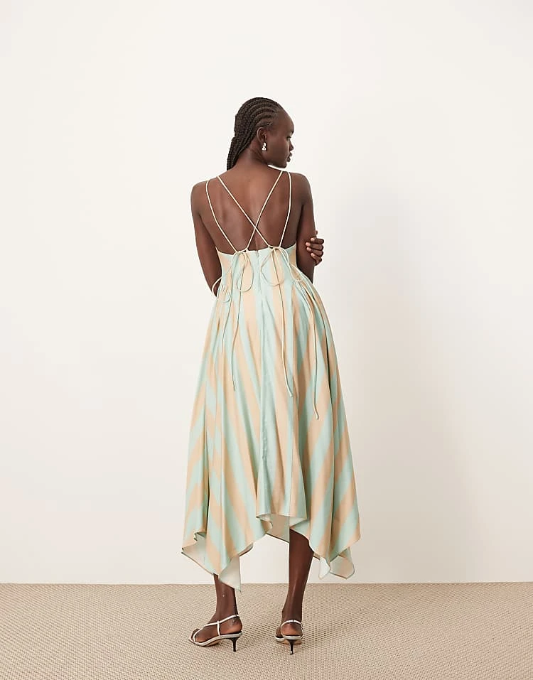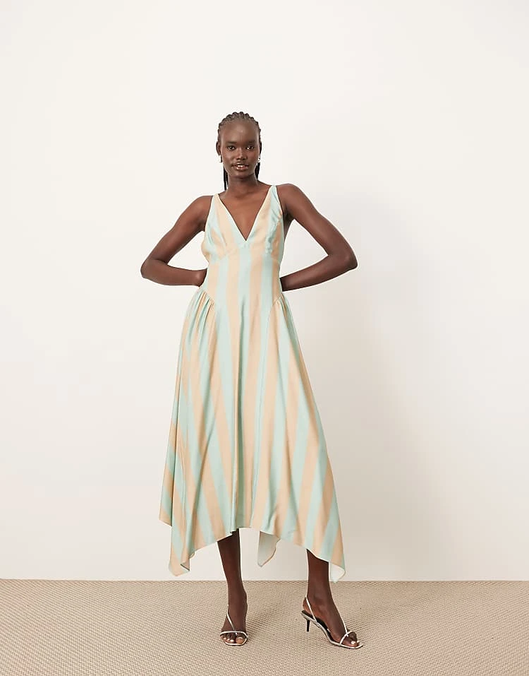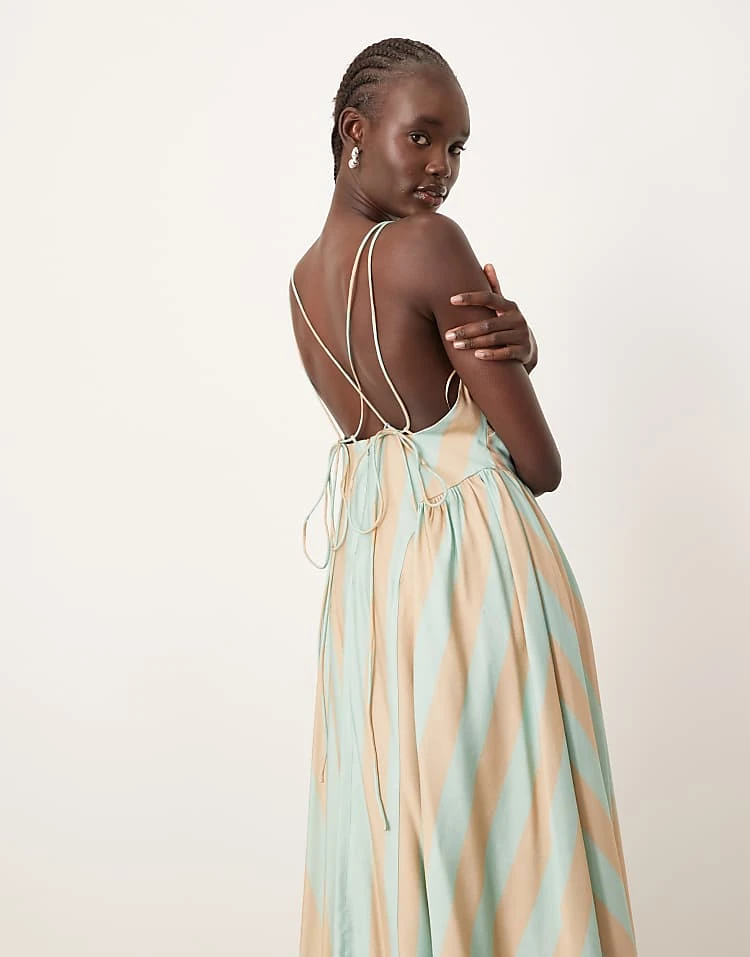 ARRANGE Bandeau Drop Waist Maxi Dress With Contrast Detail In Black And Sage For Women Black / Sage