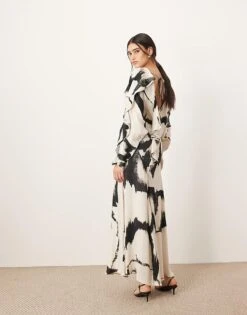ARRANGE Sheer Chiffon Drop Waist Maxi T-shirt Dress In Blurred Stripe For Women Stripe Print