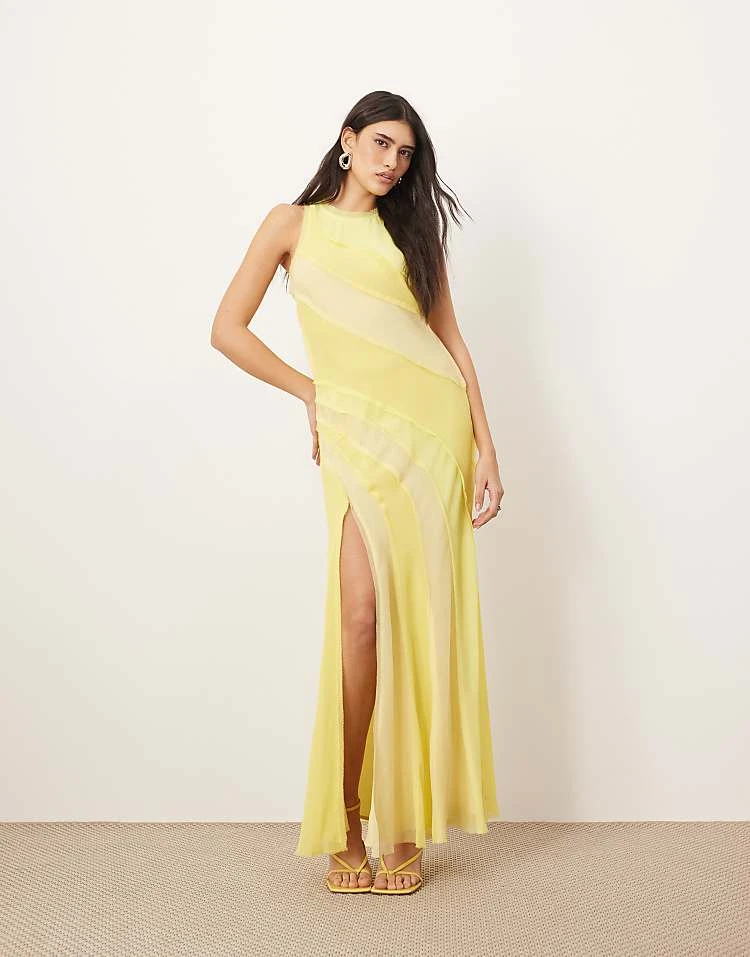 ARRANGE Sheer Chiffon Drop Waist Maxi T-shirt Dress In Blurred Stripe For Women Stripe Print