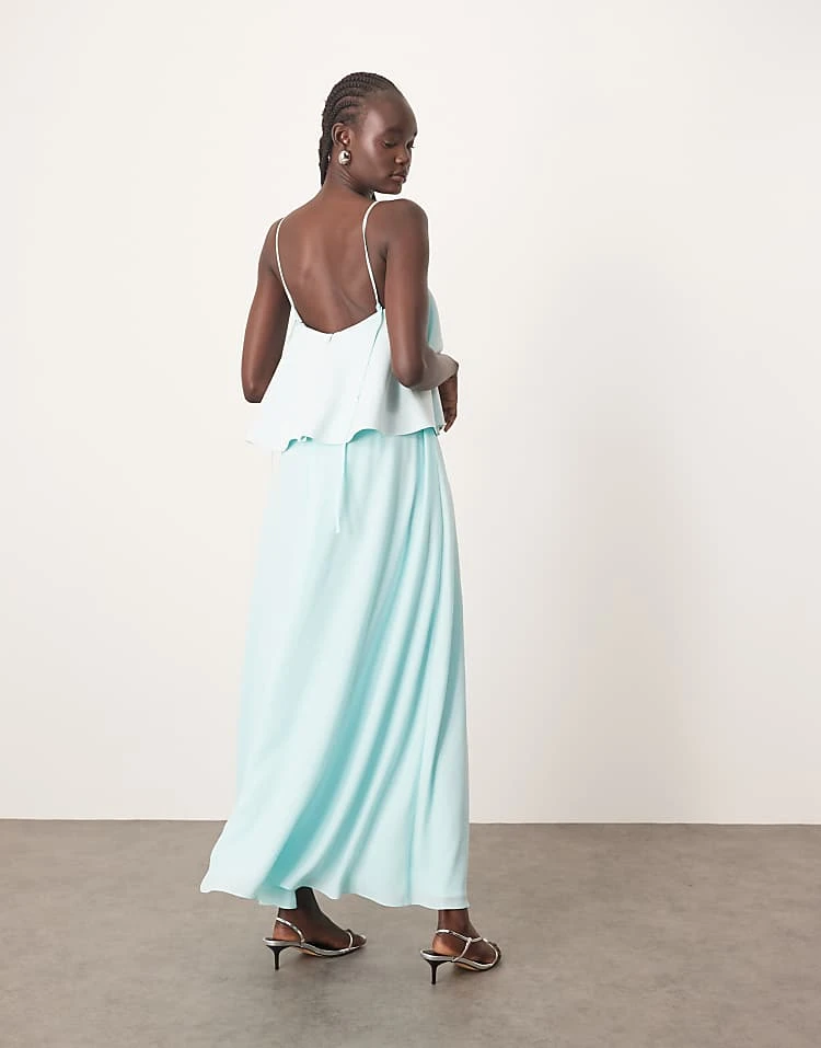 ARRANGE Sheer Chiffon Drop Waist Maxi T-shirt Dress In Blurred Stripe For Women Stripe Print