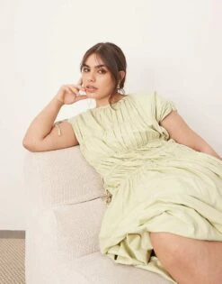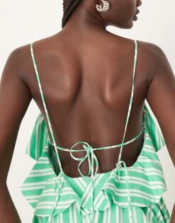 ARRANGE Bandeau Drop Waist Maxi Dress With Contrast Detail In Black And Sage For Women Black / Sage