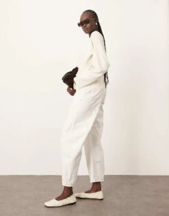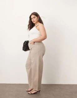 ARRANGE Remi Casual Twill Barrel Trouser In Olive Green For Women