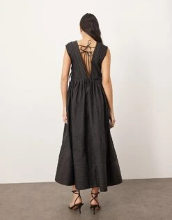 ARRANGE Satin Ultimate Draped Shoulder Maxi Dress With Back Detail In Bright Green For Women