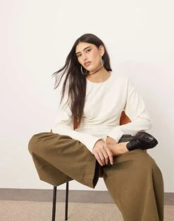 ARRANGE Curve Premium Heavy Weight Textured Jersey Shirt And Column Maxi Skirt Co-ord In Washed Sage